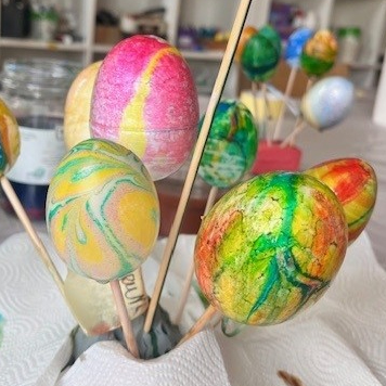 Plastyczny plac zabaw - pisanki malowane metodą ebru | Klub Kultury Przegorzały