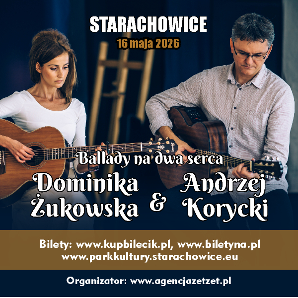 📣 Zapraszamy na koncert „Ballady na dwa serca” w wykonaniu Dominiki Żukowskiej i Andrzeja Koryckiego. To duet wykonawców ukochany przez publiczność w całej Polsce. Wspaniały kontakt Dominiki i Andrzeja z widzami sprawia, że koncerty rzadko kończą się na jednym bisie. Już nie zliczymy, który to raz pojawią się na scenie, ale z pewnością, tak jak i poprzednio, czeka nas święto piosenki, nie tylko tej żeglarskiej, którą Andrzej tworzy od wielu lat, ale także ballad znanych bardów, takich jak: Bułat Okudżawa, Włodzimierz Wysocki czy Żanna Biczewska. Miłośników poezji, nastroju, wspólnego śpiewania, odczuwania wspólnoty, ale i zabawy, nie może na tym koncercie zabraknąć. 📞 Rezerwacje/Informacje – Agencja ZetZet: tel. 517-112-330