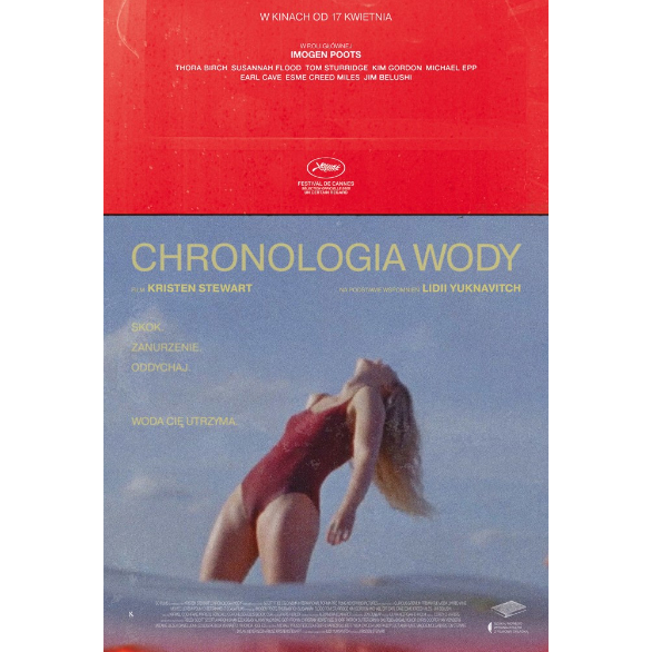 W centrum filmu znajduje się kobiece ciało, to przez nie Lidia poznaje radość i ból, to z nim eksperymentuje, to od niego ucieka, to je trenuje, dyscyplinuje, zaniedbuje, to z niego czerpie całą swoją siłę. Kiedy ją poznajemy, jest wciąż dziewczynką, za którą krok w krok podąża ojcowskie spojrzenie. Imponująca, przejmująca do szpiku kości adaptacja autobiograficznej powieści Lidii Yuknavitch błyskotliwie przekłada słowa na obrazy, szatkuje niechciane wspomnienia, puszcza wodze fantazji, traci i odzyskuje kontrolę, mąci wodę, ale z determinacją najlepszej pływaczki pewnymi ruchami sunie do przodu. Ta opowieść zaczyna się jak tsunami – fala, która unicestwia domy i ludzi, lecz kształt wody, a wraz z nią emocjonalna temperatura i rytm „Chronologii wody” zmieniają się z rozdziału na rozdział.