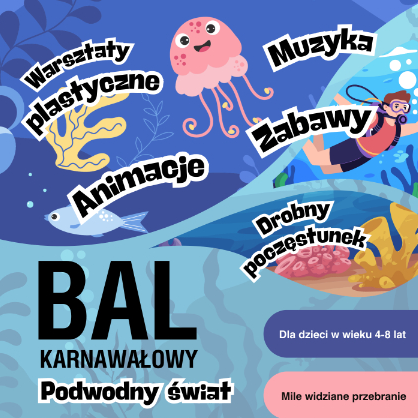 Zapraszamy na bal karnawałowy Podwodny świat dla dzieci w wieku 4-8 lat.