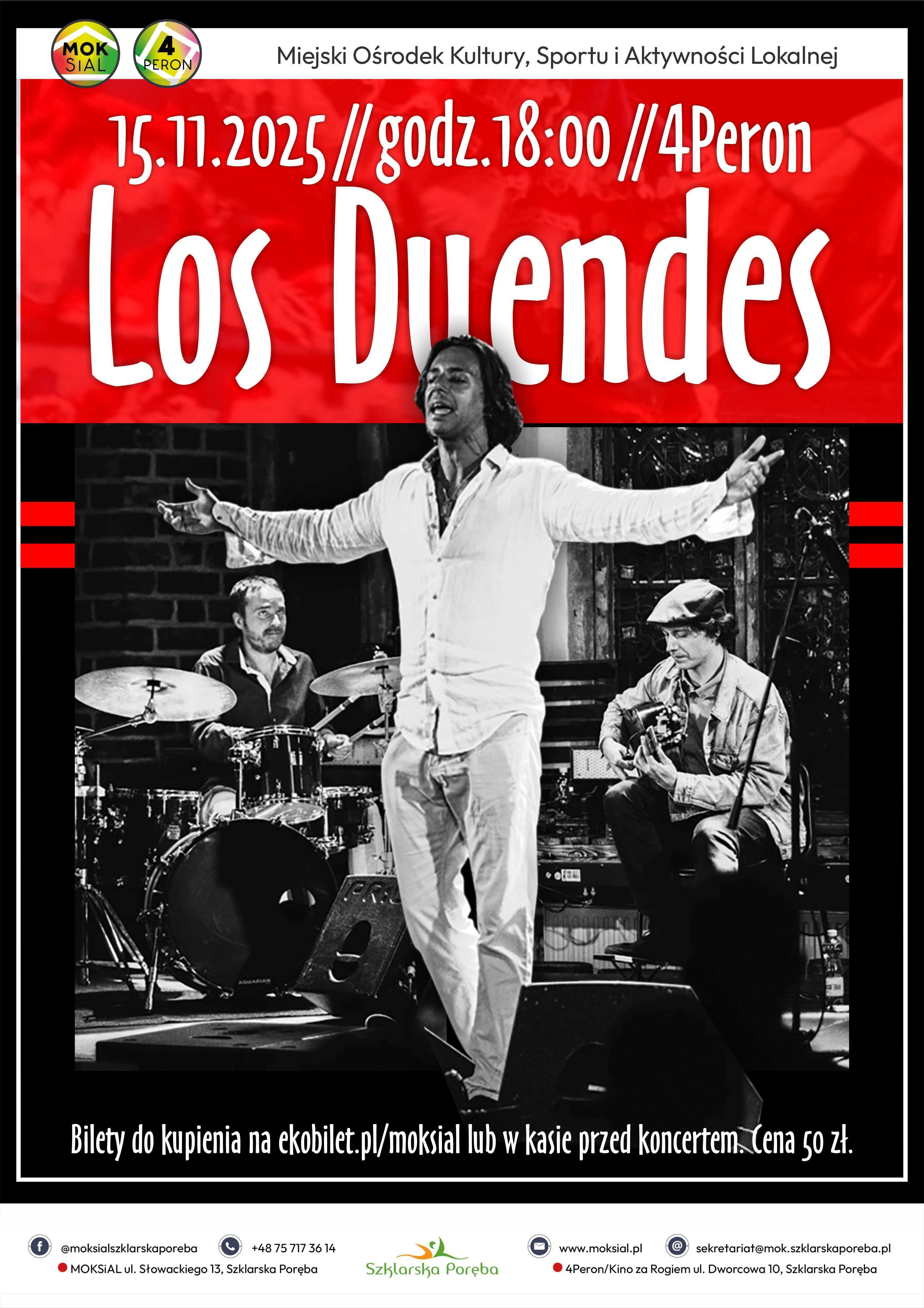 Zespół Los Duendes to jedno z najbardziej oryginalnych i charyzmatycznych zjawisk na współczesnej scenie muzyki flamenco i world music. Ich koncerty to energetyczna podróż przez emocje, style i kultury – od andaluzyjskiego flamenco po klasykę, od jazzowej improwizacji po rockowy puls.