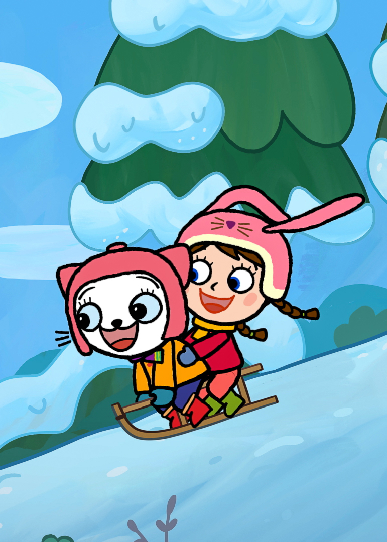 śnieżkami z Packiem, Adelką i Juliankiem, rusza z tatą w wielką podróż i przekonuje